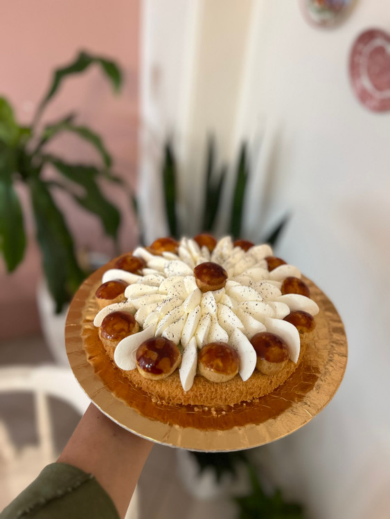 سنت انوره وکیک شیفون با کرم دیپلمات ، شوکت های کاراملی پر شده با کرم پتیسیر